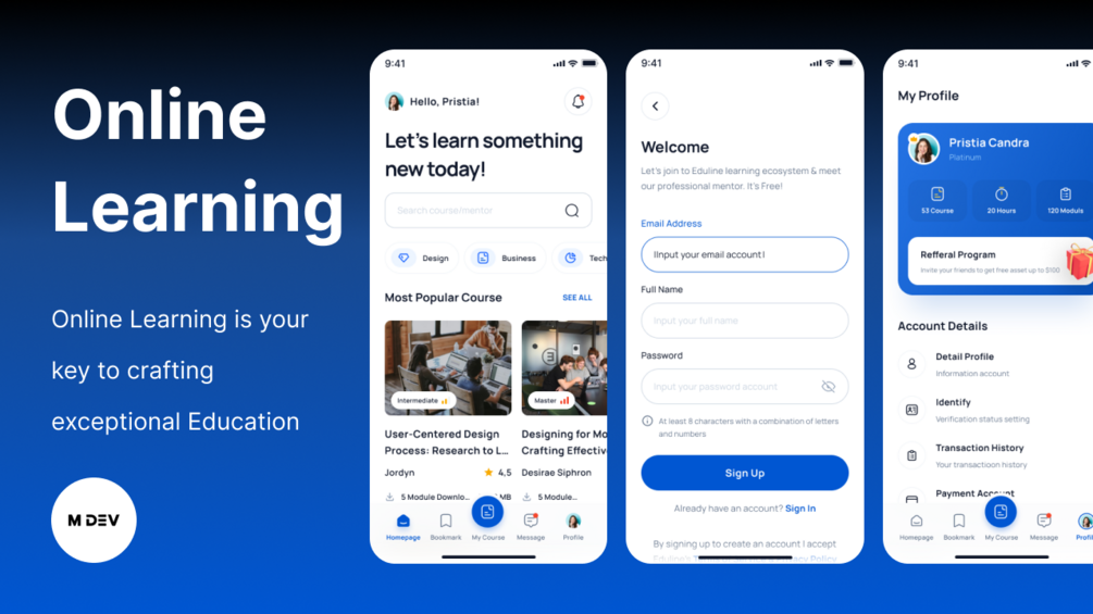 Online Learning is your key to crafting exceptional Education & Online Learning Apps, offering a rich UI Kit with detailed high-quality screens in both Light and Dark themes: